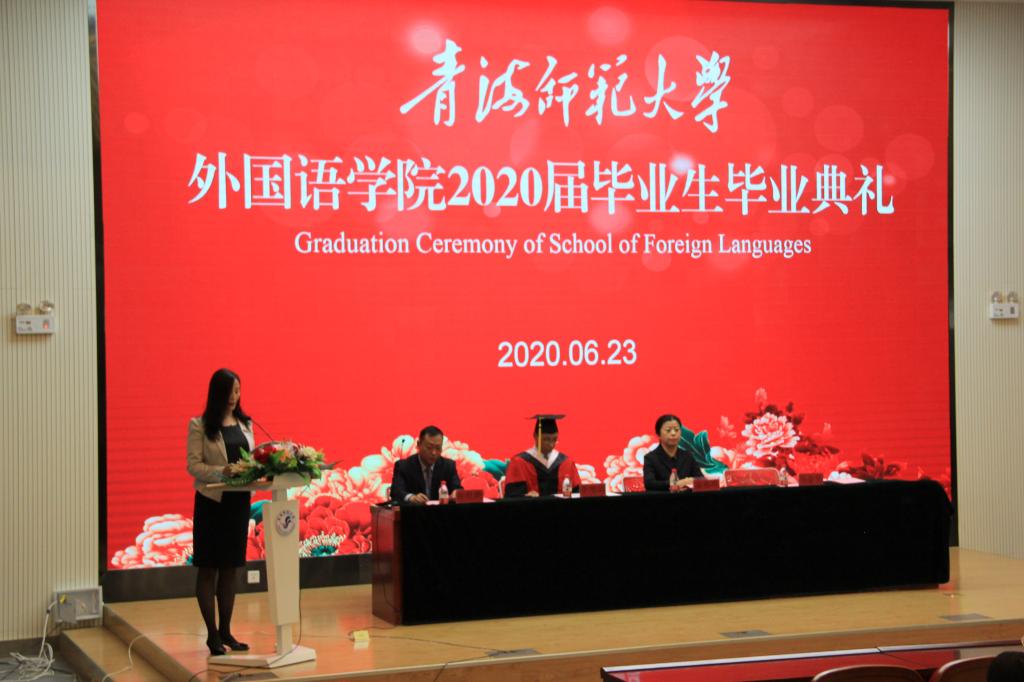 毕业典礼在庄严的国歌声中拉开序幕。学院党总支书记、院长马金芳代表学院向圆满完成学业的106名本科毕业生�42名硕士毕业生表示衷心的祝贺,并对全体毕业生提出殷切期望和要求。随后,副院长李增垠宣读�2020届研究生、本科生毕业的决定,张胜鹏宣读了《外国语学院关于表彰2020届优秀毕业生的决定》。秦燕鸣分别为毕业生代表、优秀毕业生颁发了毕业证书和荣誉证书�
