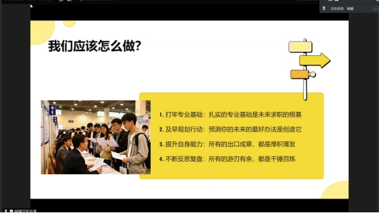 为帮助在校生认清就业形势、锚定专业优势、科学规划职涯,10�29日晚,外国语学院通过腾讯会议开�“职业生涯规划”专题讲座,本次的主题是:锚定专业优势,绘制职业蓝图——从� 知专业”到“定职业”。学�2024级全体学生在线参会�